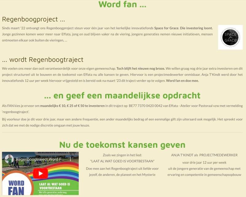 Hier gaan we aan de slag met je concrete fundraisingnood. We stellen een fundraisingteam samen en maken een fundraisingmix op maat. Dit hebben we uitgerold voor de Arkgemeenschap Vlaanderen en voor de Effatagemeenschap.